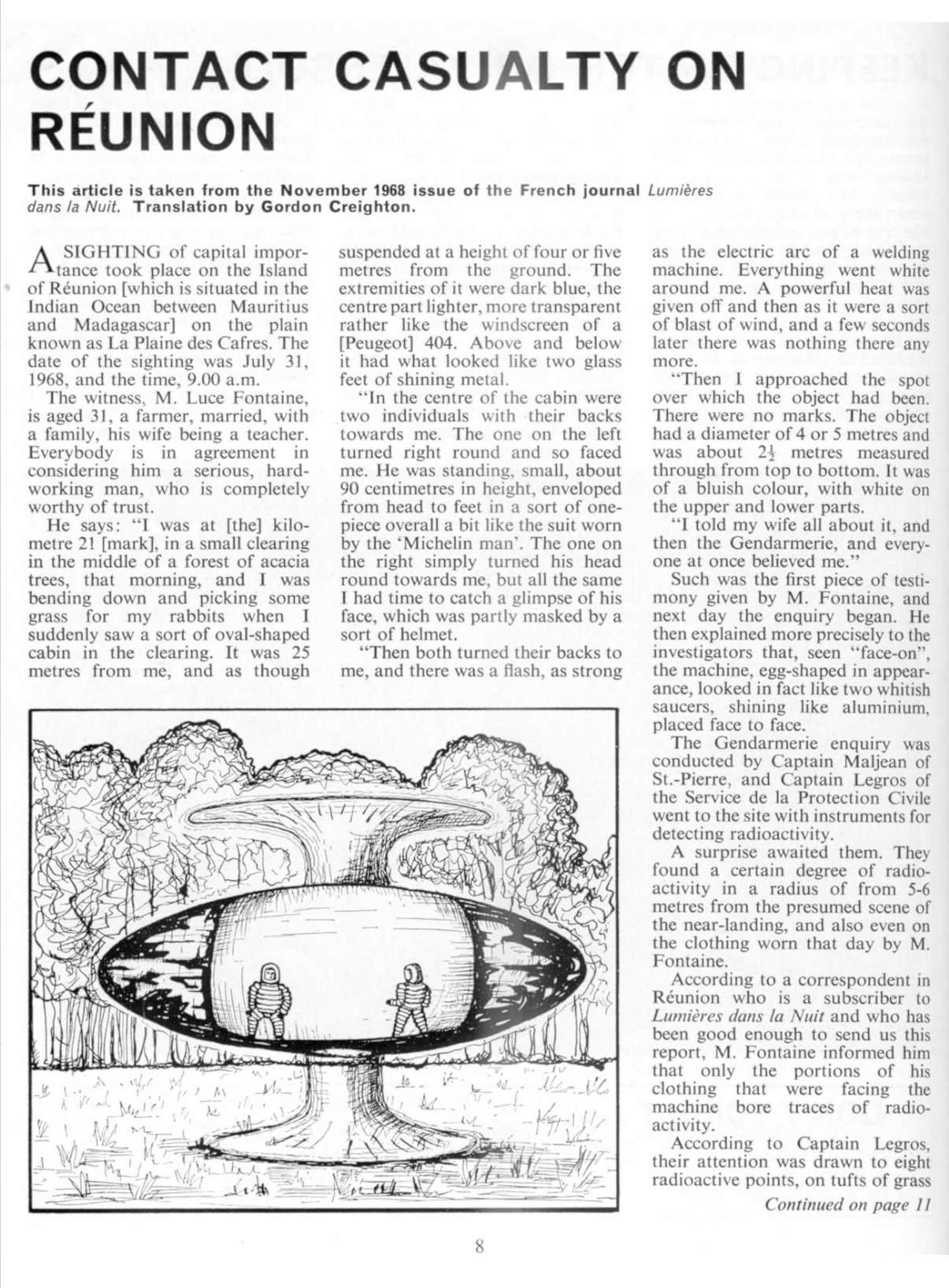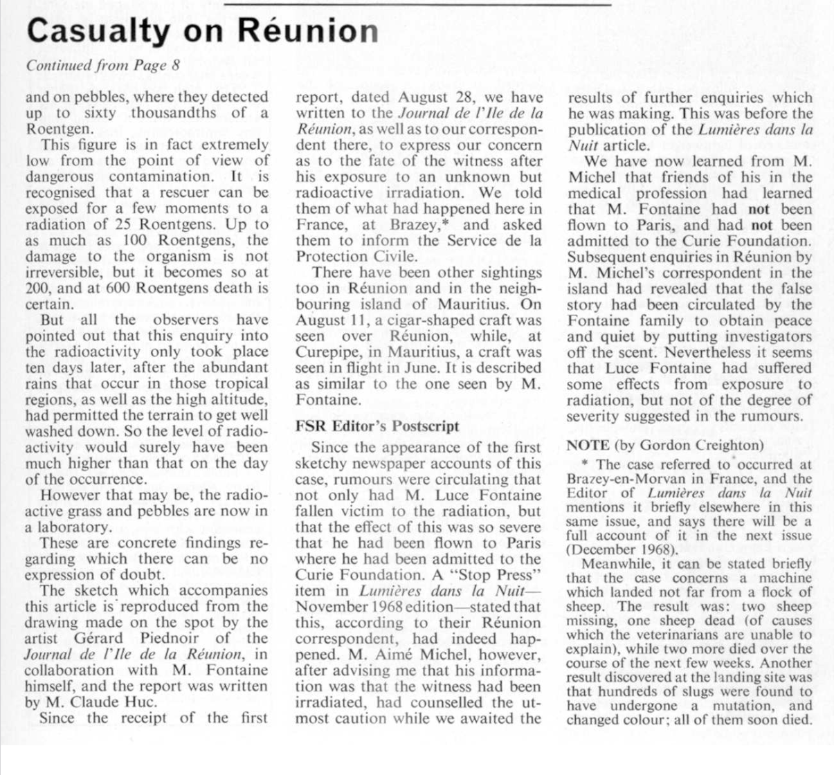 “Contact Casualty on Réunion,” Flying Saucer Review 15, no. 1 (Jan./Feb. 1969): 8, 11;