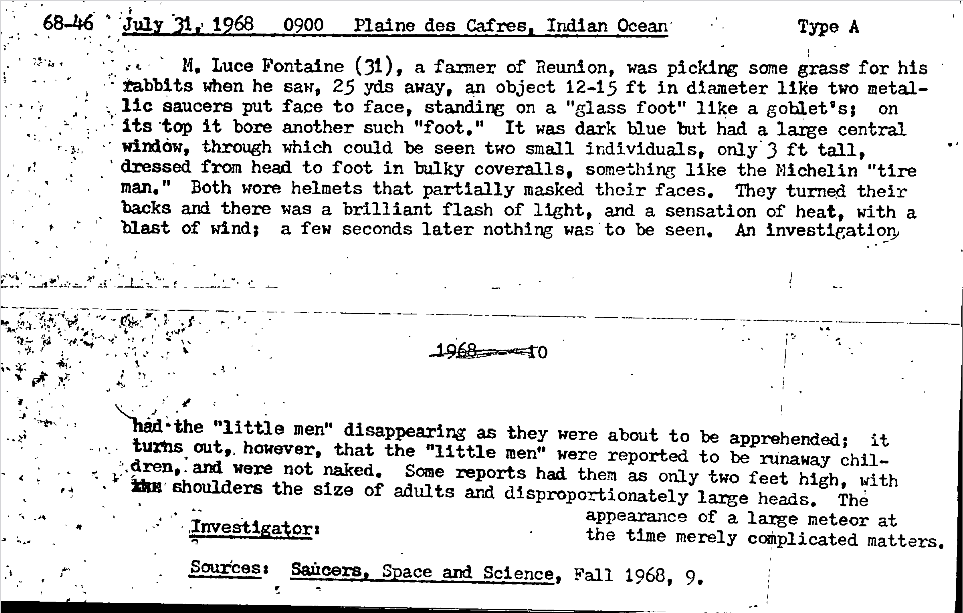 Center for UFO Studies, HUMCAT Index 1968,Case #68-46, p. 69;
